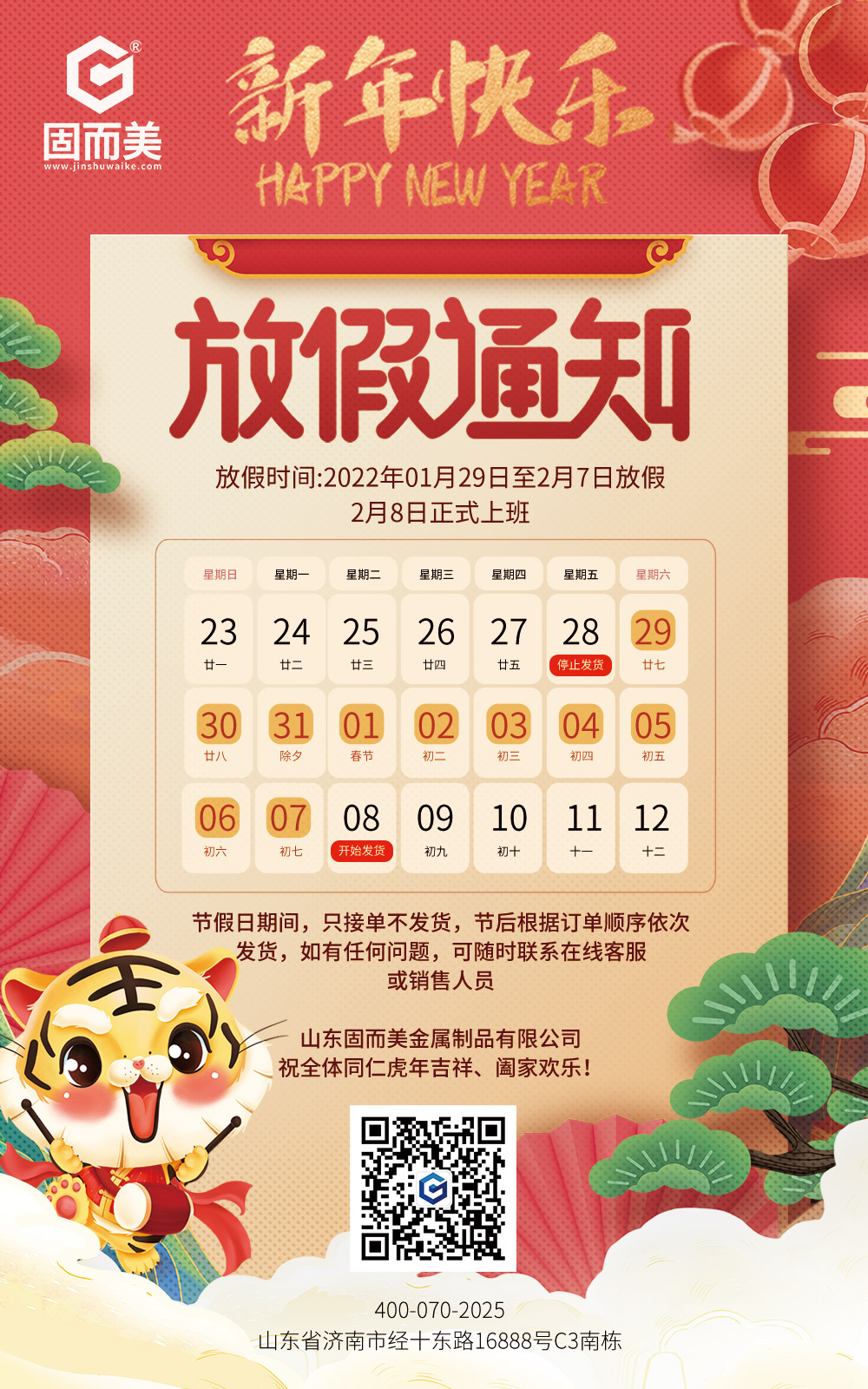 固而美祝大家新年快樂,身體健康,闔家團(tuán)圓,虎年大吉!